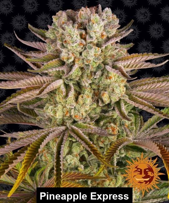 Pineapple Express – 10 Brand: Barney’s Farm Hawaiian Landrace Sativa x Trainwreck (Afghani x Mexican Sativa x Thai Landraces) Sativa dominant (10 ) High THC (16-24%) Low CBD (0-1%)